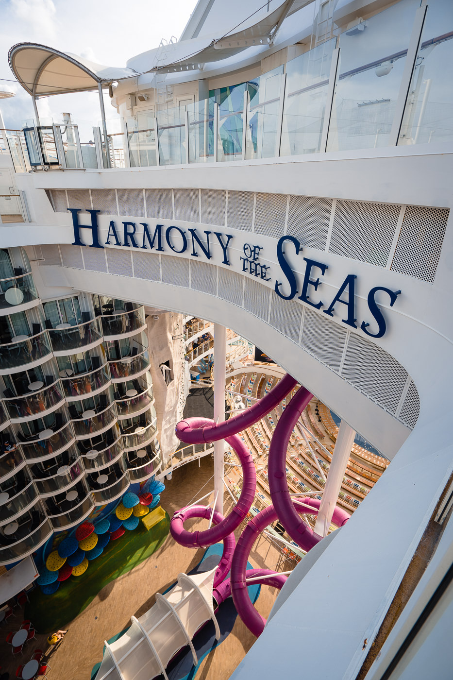 When we awoke, we met up with my parents (who flew in from San Francisco the day before) for a quick breakfast from the bagel shop down the street. Our check-in time window as at 11 am, so we then proceeded via Lyft XL to Port Everglades. As we drove closer to the port, the sheer size of the Harmony of the Seas became more and more evident. Seeing her next to other ships was just amazing, she seemed to tower over her port-mates, and her young age showed in the overall appearance of the ship.