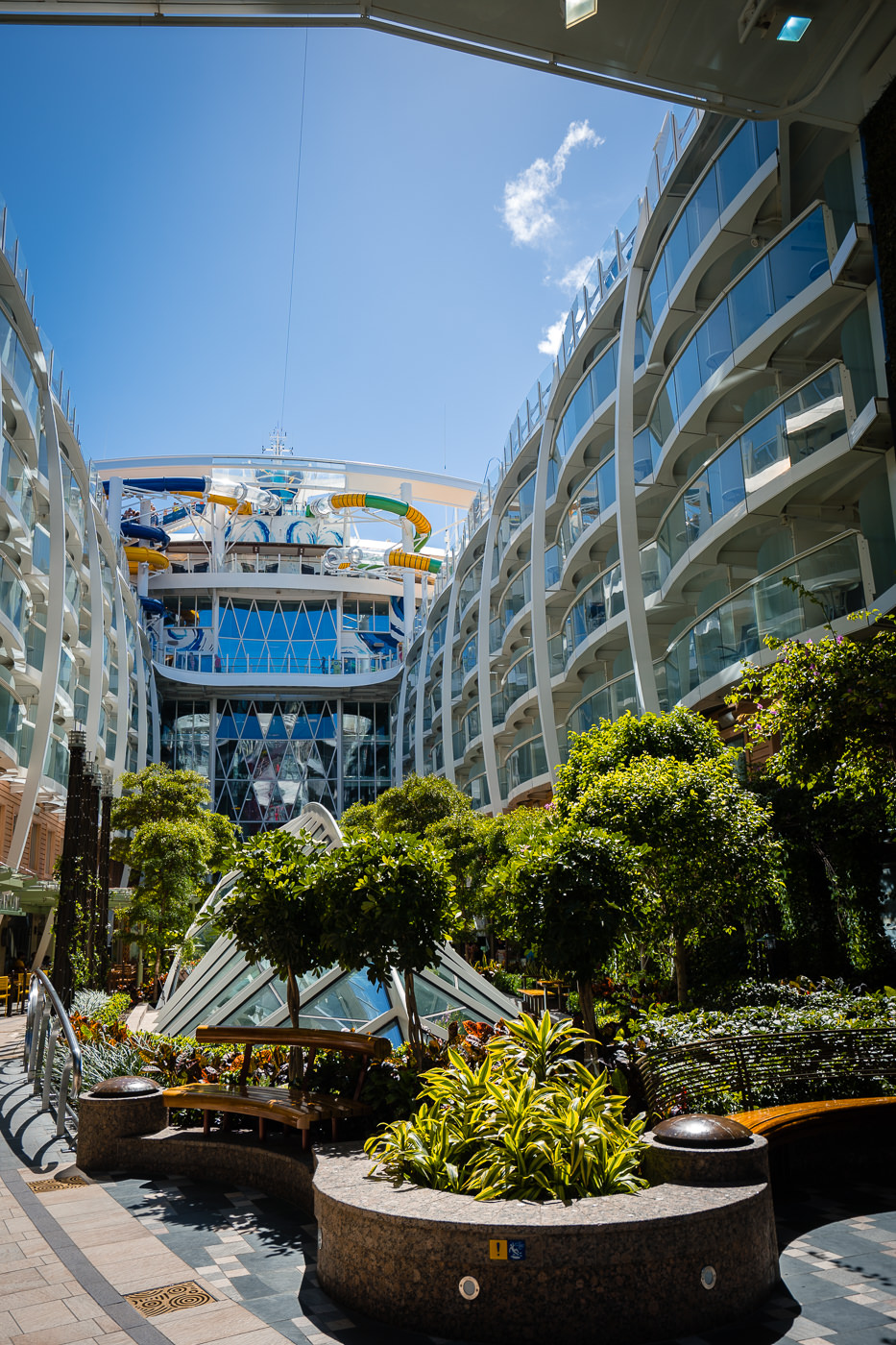 From the time that we dropped our bags with the porter to when we were onboard only about 20-30 minutes had elapsed. The security line was about 10 minutes, from that point forward we did not wait in line again. We swiftly moved through check-in, the obligatory pre-cruise photo, table to get the kids’ wristbands then on to the ship; this was by far the fastest embarkation that we have ever experienced. Once onboard we headed straight to Park Cafe in the Central Park Neighborhood, and our vacation started.
